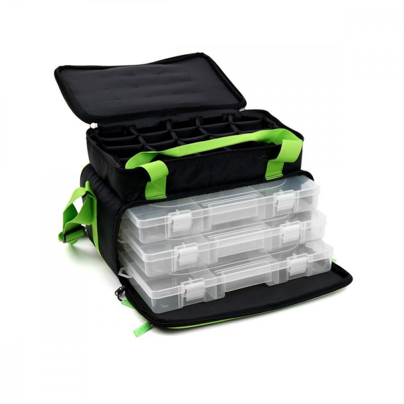 Elegance Method Geantă cu 3 Cutii 38x23x25 cm oferă soluția perfectă pentru pescarii care au nevoie de o geantă compactă și bine organizată pentru echipamentele lor de pescuit. Cu dimensiuni de 38x23x25 cm, această geantă include 3 cutii special concepute pentru depozitarea plumbilor, vârtejilor, monturilor și altor mici accesorii. Materialele de calitate superioară și designul durabil asigură protecția echipamentului împotriva umezelii și uzurii, iar fermoarele robuste și compartimentarea inteligentă permit o accesibilitate rapidă și o utilizare ușoară. Curelele reglabile de transport adaugă confort, iar designul compact face ca geanta să fie ușor de integrat în bagajul tău de pescuit. Elegance Method Geantă cu 3 Cutii este alegerea ideală pentru pescarii care apreciază ordine și eficiență în organizarea echipamentului lor.