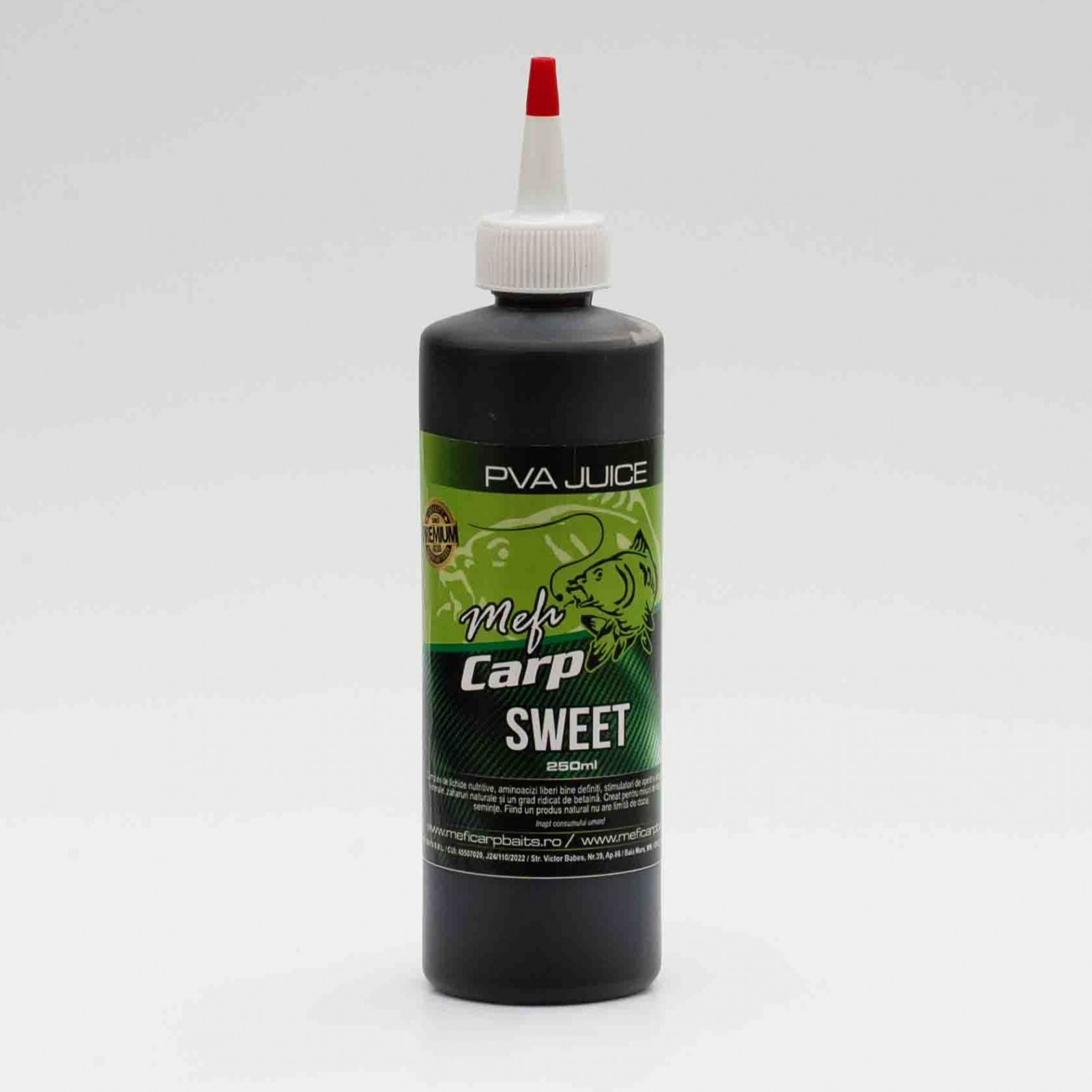 PVA Juice este un lichid special creat pentru a optimiza utilizarea materialelor PVA, cum ar fi pungile și săculeții solubili. După cum sugerează și numele, acest lichid de culoare închisă și cu o vâscozitate ridicată este formulat pentru a nu dizolva materialele PVA, oferind astfel o versatilitate excepțională în diverse tehnici de pescuit.